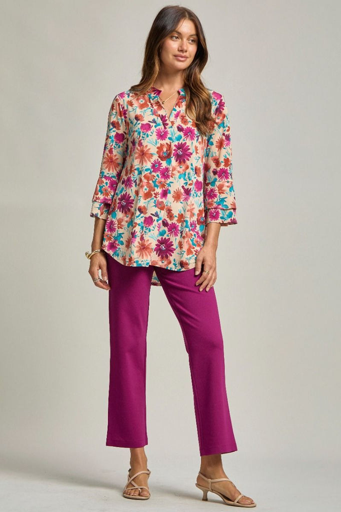 Meet the belled LIZZY! A fresh take on effortless elegance. Designed with a relaxed fit, this versatile top features a refined Lizzy neck and beautifully tiered bell sleeves that add a touch of romantic flair.