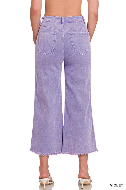 ACID WASHED HIGH WAIST FRAYED HEM STRAIGHT