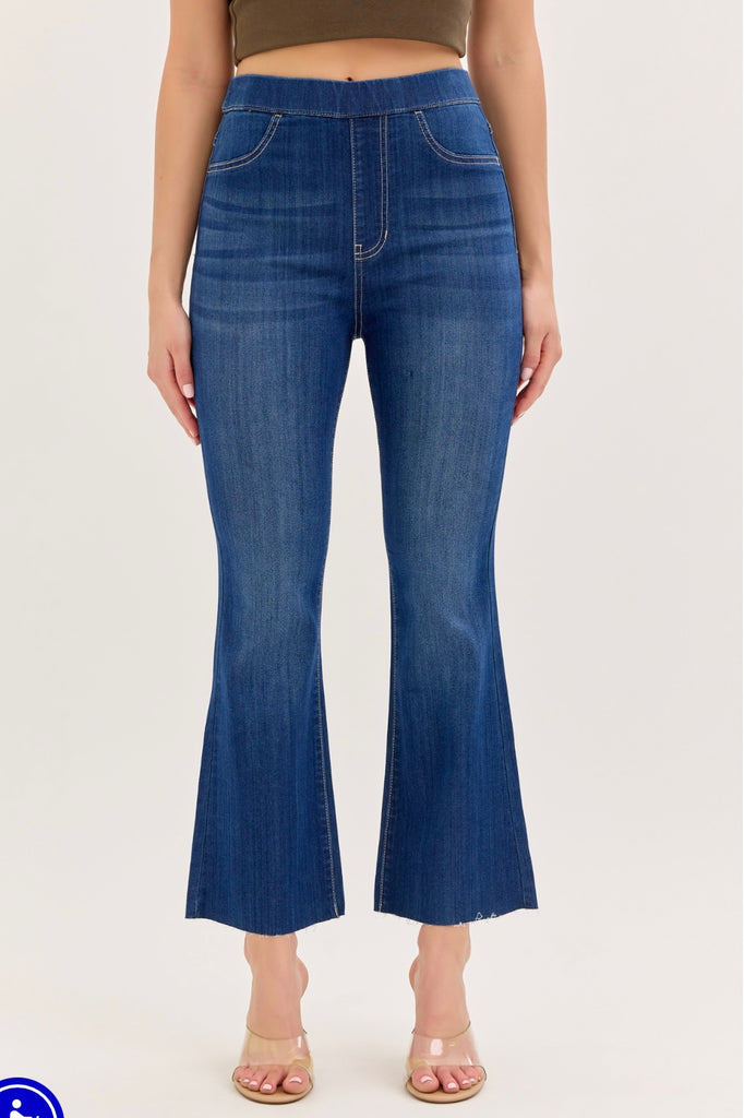 Cello Dark Denim Pull On Crop Flare Jeans
